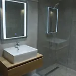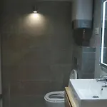 לחדרי האמבטיה יש מקלחת בעמידה ושירותים נפרדים.
